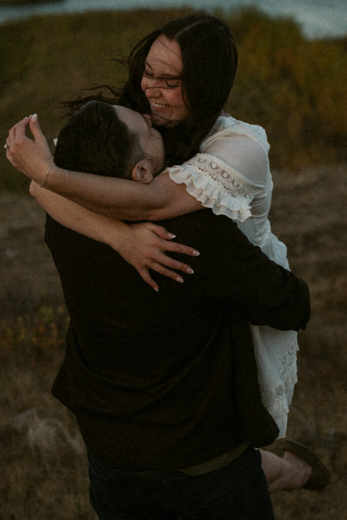 By the time we reached the top of the hill for sunset, the prairies were glowing. That dreamy, cinematic golden hour wrapped around them as if it was made for their session. The way they move together — gentle, steady, completely in tune — made every single frame feel emotional and effortless. Their love is soft but powerful, the kind that translates into photos you can actually feel.