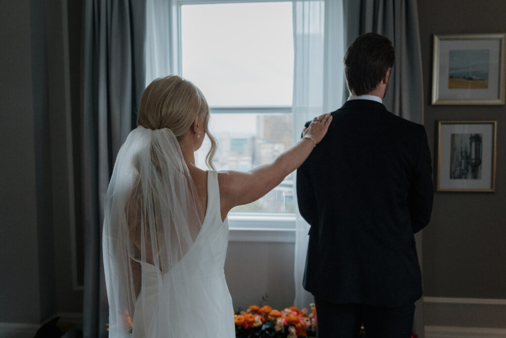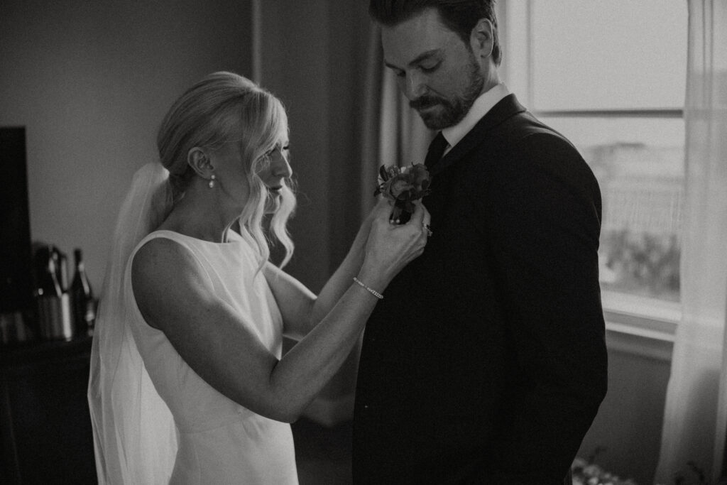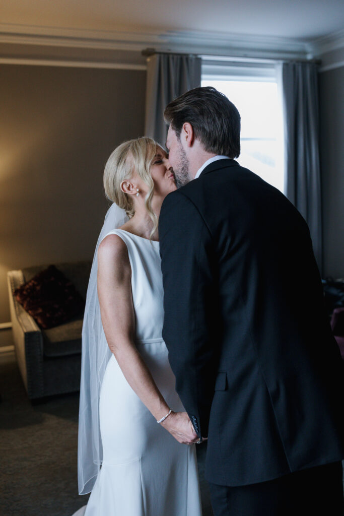 We kicked off the day at the elegant Hotel Saskatchewan, where Kirstin got ready surrounded by her girls. Hunter Pickering MUA and Pauline Fe absolutely nailed the glam—Kirstin looked like a walking editorial, glowing and radiant, with that “I’m about to marry my person” energy beaming from her.