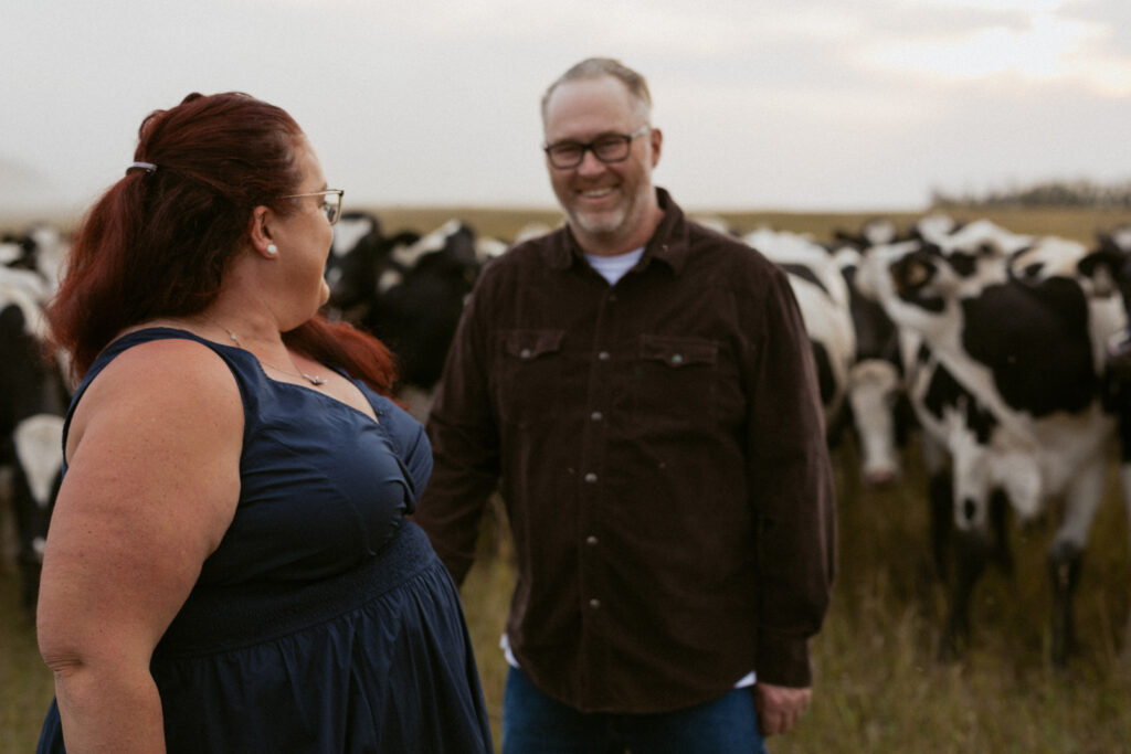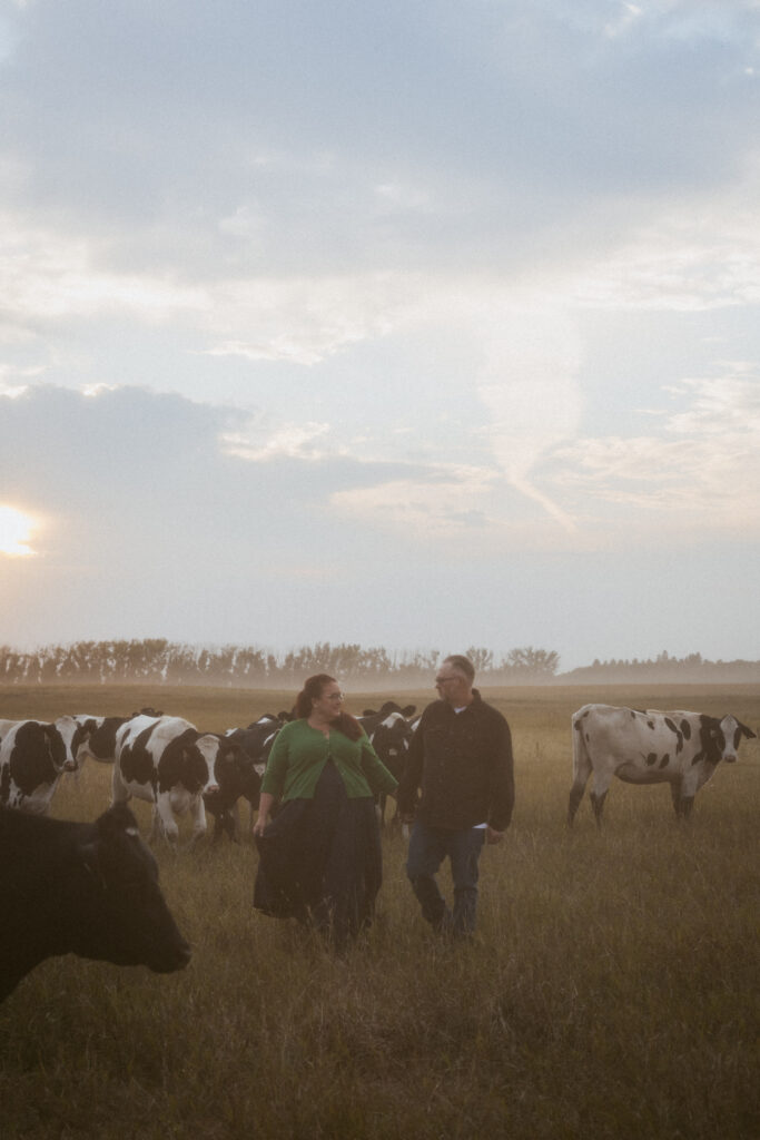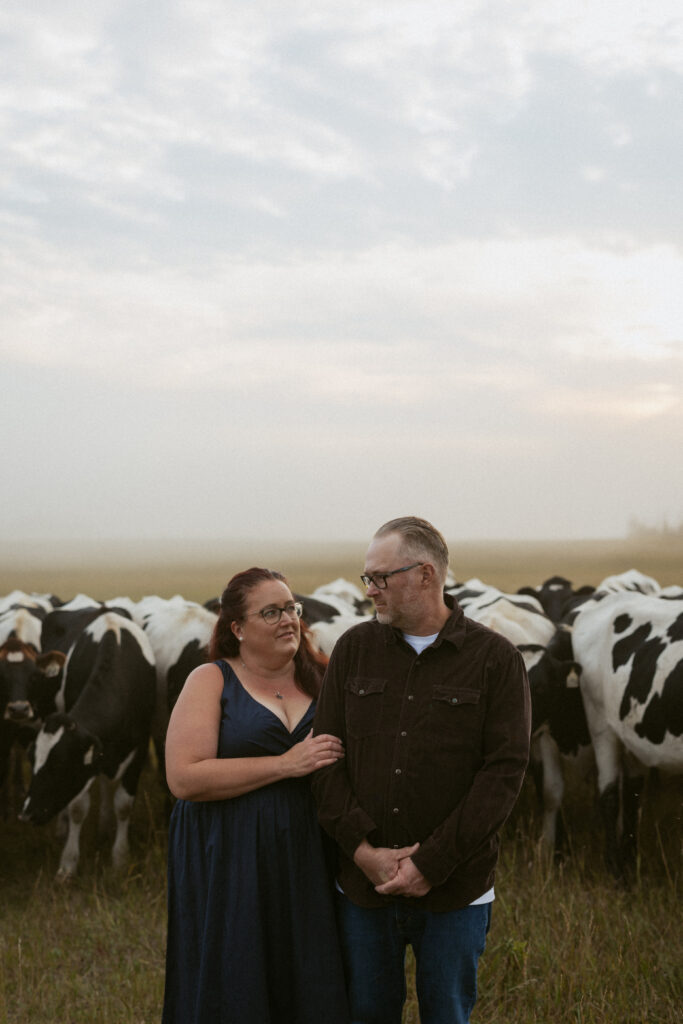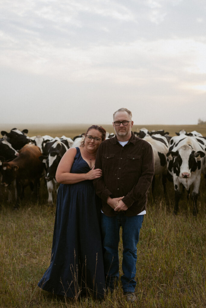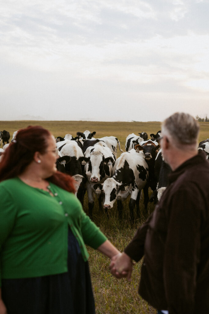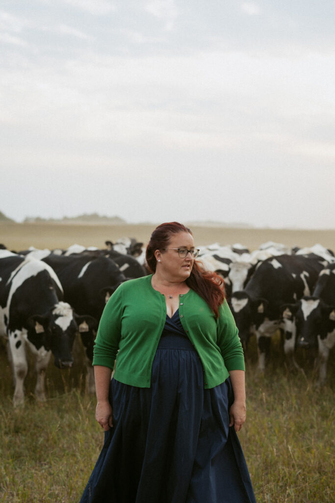 Afterward, we headed into the pasture — and oh my goodness, my heart could barely handle it. The cows FULLY came over to hang out with us. Like, actually walked up and formed a little audience. And if you know me, YOU KNOW I am shamelessly obsessed with cows. They are my Roman Empire. So yes… I was thriving. And the photos we got with them in the background? Literal farm-core perfection.